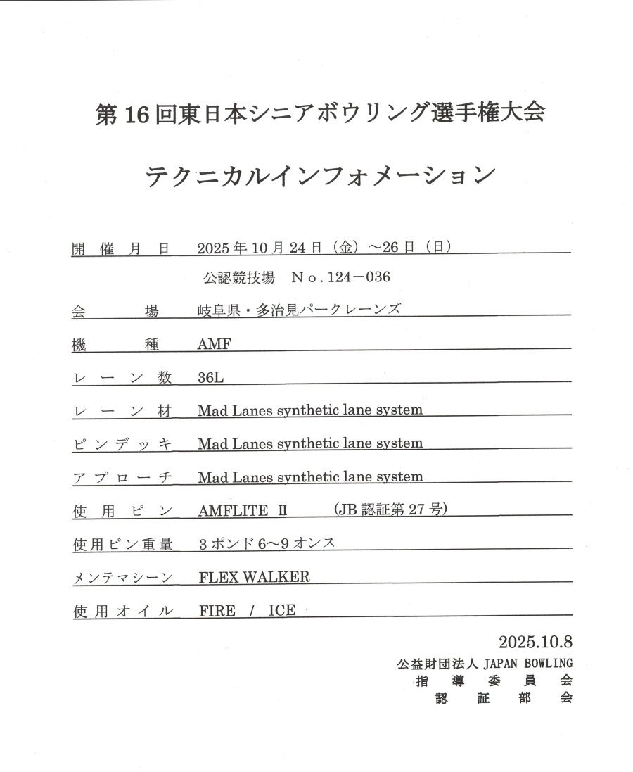 : 第16回 東日本シニアボウリング選手権大会(オイルパタ−ン)