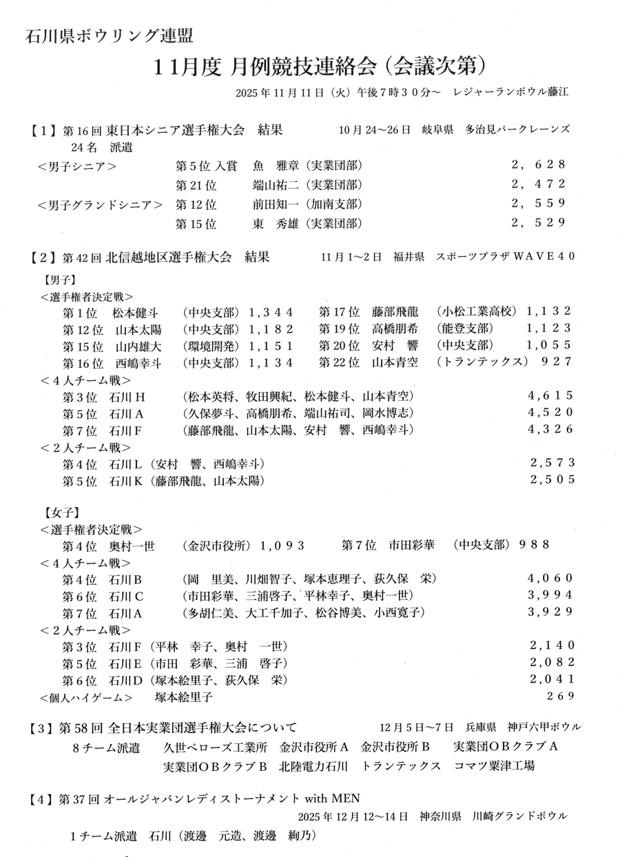 : 月例連絡会議 2025年 11月