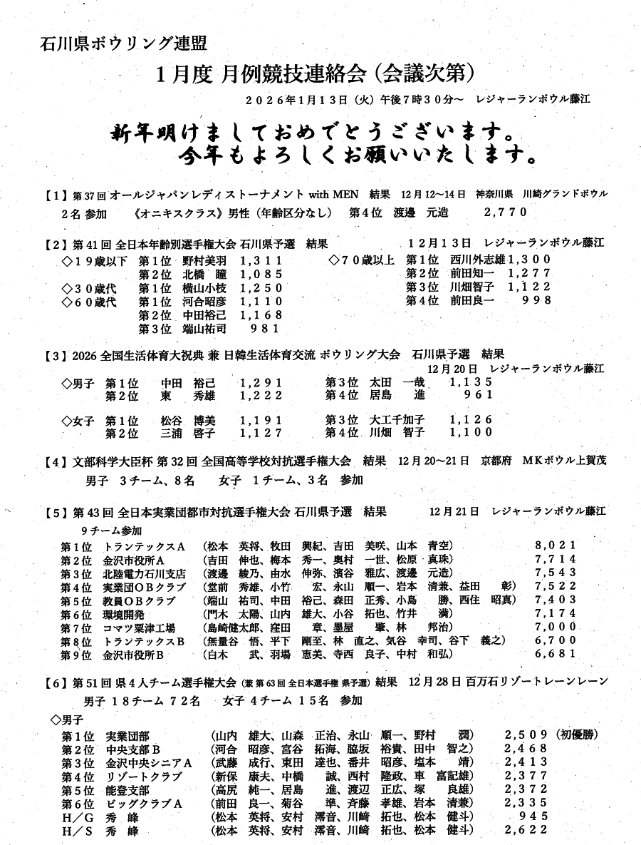 > 月例連絡会議 2026年 1月