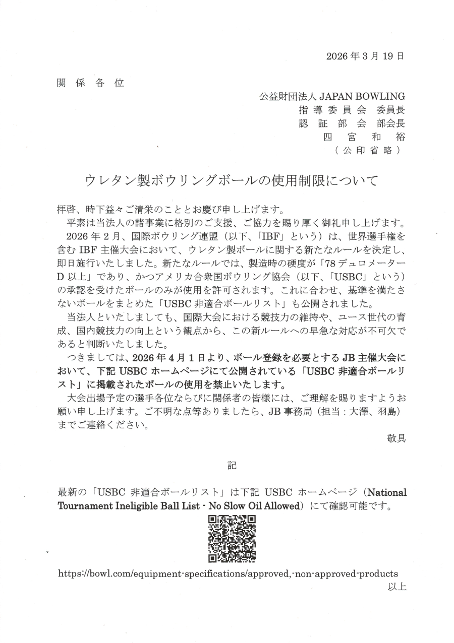 コロナウイルス対応(全日本ボウリング協会が主催する大会に参加される方へ)