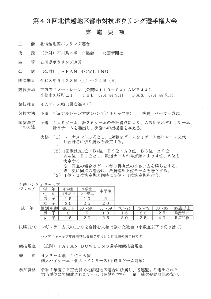 : 第43回 北信越地区都市対抗ボウリング選手権大会