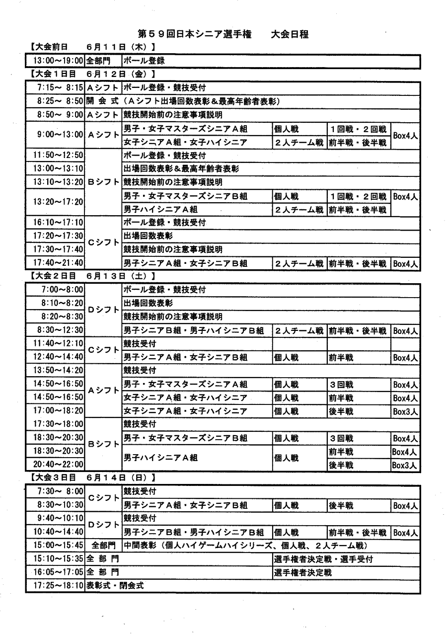 第16回 東日本シニアボウリング選手権大会(レーン配当)